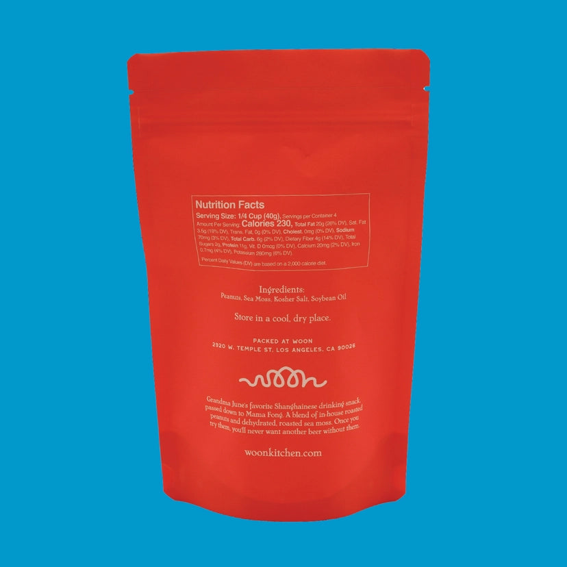 Grandma June's favorite Shanghainese drinking snack, passed down to Mama Fong. A blend of in-house roasted peanuts and dehydrated, roasted sea moss. Once you try them, you'll never want another beer without them.